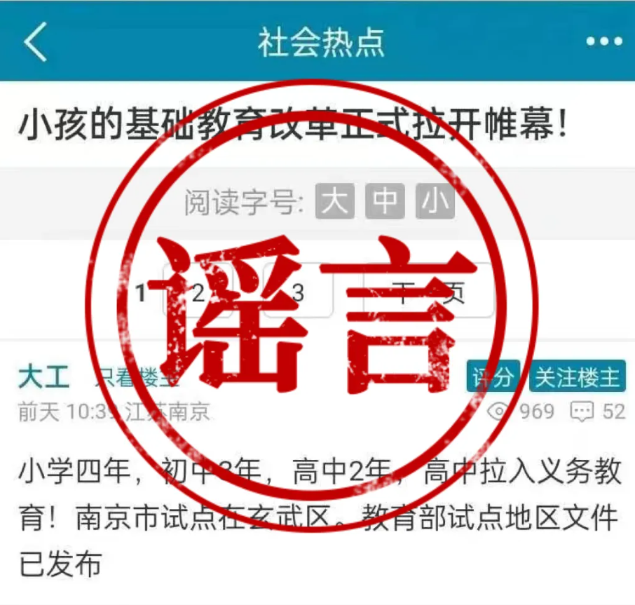 南京孫某、蘇州李某等人編造傳播“義務(wù)教育改革縮短學(xué)制”網(wǎng)絡(luò)謠言案。今年1月4日,南京孫某、蘇州李某等人為達博取關(guān)注和提高樓盤銷量等目的,編造傳播“義務(wù)教育改革縮短學(xué)制”“高中納入義務(wù)教育,南京在玄武區(qū)試點”等謠言信息,造成不良社會影響,擾亂公共秩序。孫某、李某等7人已被公安機關(guān)分別予以行政處罰。